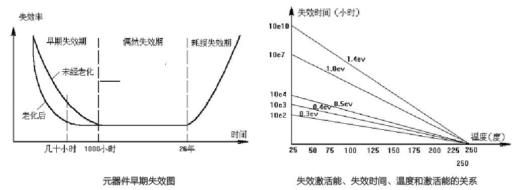 如果對每個元器件都進行1000h試驗,一般來說是不經濟的,也是不可行的。為了能盡快地,有效地剔除存有各種缺陷的元器件,這就需要加應力老化。實踐證明,如果對元器件施加相應的應力進行老化,就能加速使器件產生早期失效。